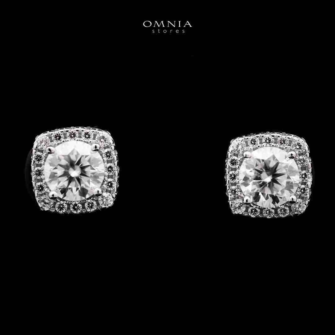Omnia Chamsa Silver Square Stud Earrings – Bold Geometry with Certified Brilliance
