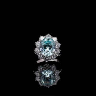Omnia Maysun Baby Blue Oval Ring in 92.5 Silver with High Quality Simulated Diamonds