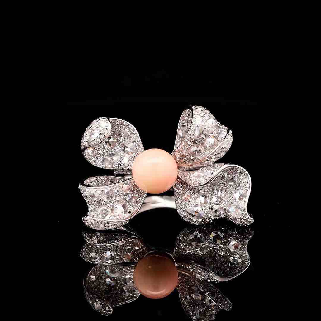 Omnia Coral Butterfly Ring in 92.5 Silver with High Quality Simulated Diamonds quantity