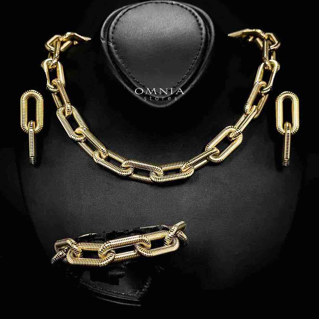 Command attention with the Omnia Diyanah Jewelry Set, a striking ensemble of necklace, bracelet, and earrings designed for women who love bold, elegant statement pieces. Crafted from high-quality 13mm stainless steel and finished in a rich copper-plated gold color, this set blends classic Middle Eastern flair with modern durability and shine.
