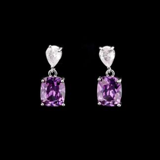 Omnia Rima Drop Earrings in High-Quality Purple and White Zircon Stone in Rhodium Plated with Classic Teardrop Design
