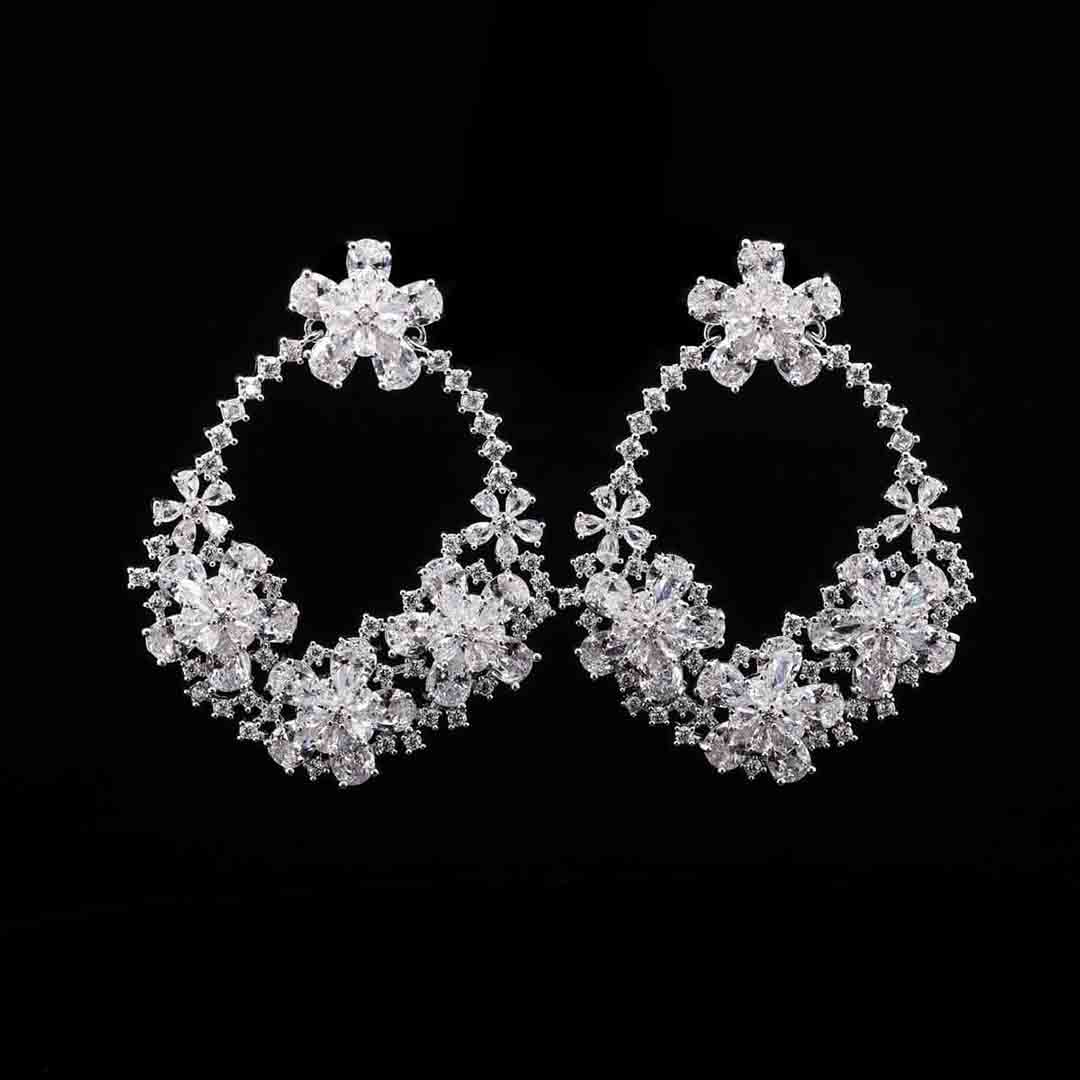Omnia Elegant Floral Hoop Earrings in High-Quality Zircon Stone and Rhodium Plated quantity