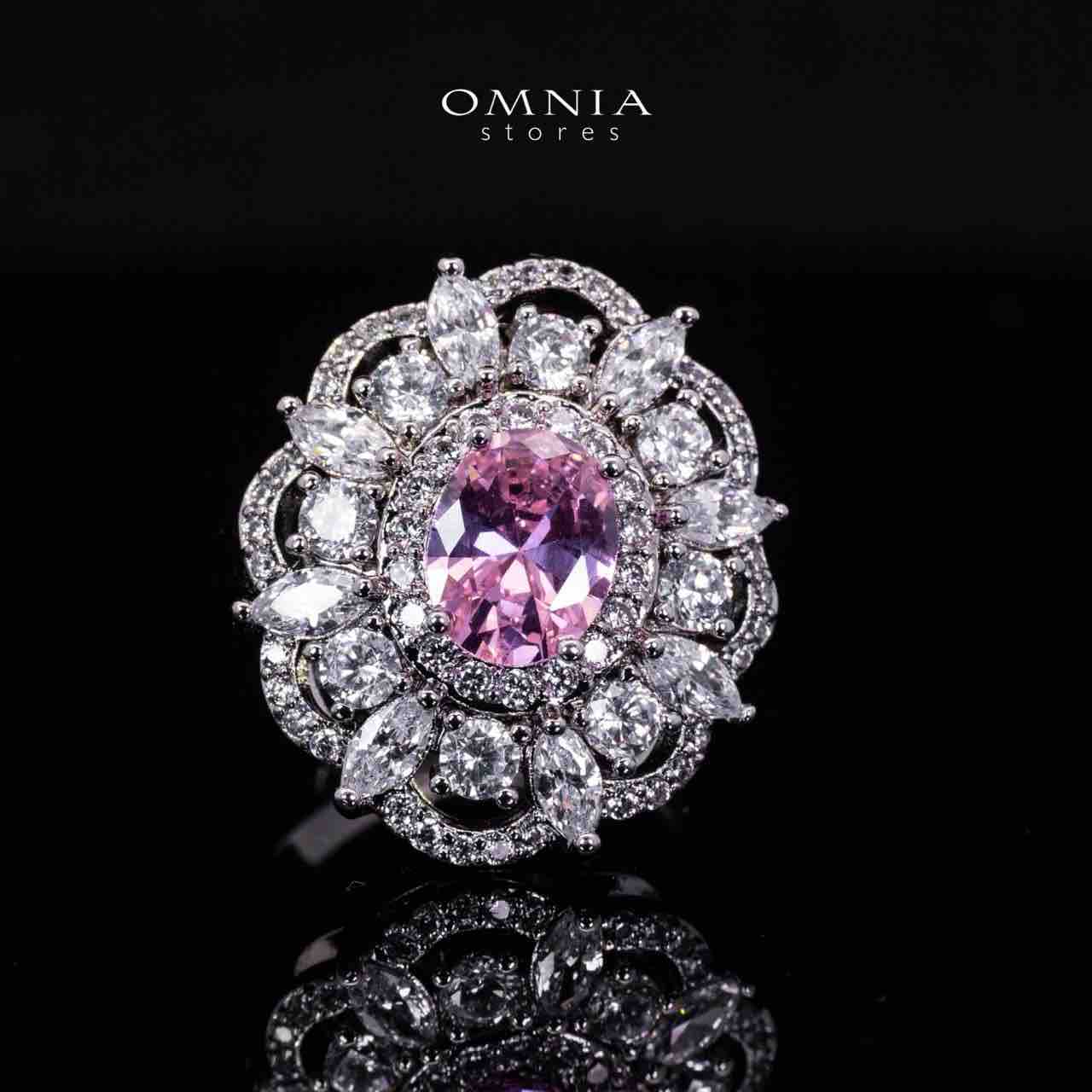 Omnia Esra Pink Luxury Bridal Full Set in High Quality Zircon Stone, Rhodium Plated