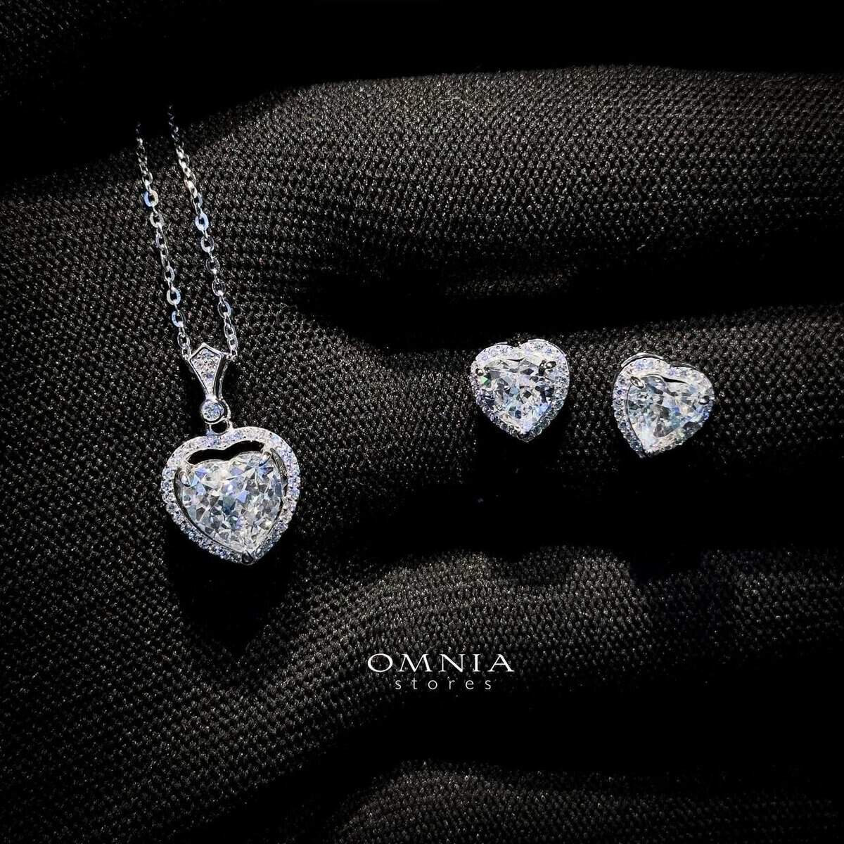 Omnia Faria White Iced Cut Heart Necklace and Earrings Set in 92.5 Silver