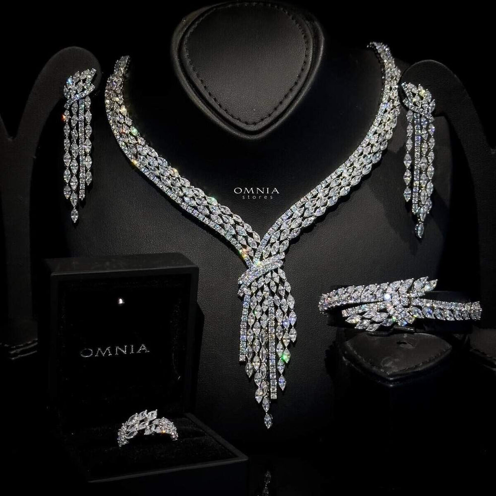 The Omnia Fatma White Set is in the Omnia Stores in UAE, Dubai. These lovely accessories are made of shiny white zircon stones and are plated with Rhodium. This bridal accessory consists of a necklace, earrings, ring and a lovely bracelet that will make any occasion more special. Artificial diamonds gleam magic all over, giving it the best look for any occasion like weddings, parties and most celebrations. Click through and check out this affordable bridal set on our website to make your special day as special as you are! Order now