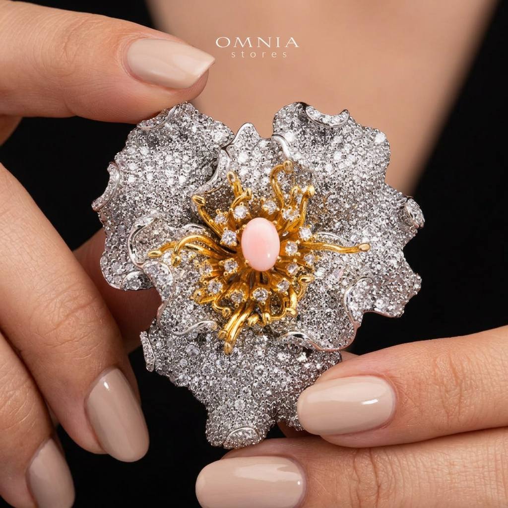 The Omnia Fiora Pink Coral Flower Silver Brooch is a charming and beautifully detailed accessory designed to bring elegance, color, and sparkle to your outfit. Crafted from premium 925 sterling silver, this brooch features a delicate pink coral-inspired flower, enhanced with high-quality white simulated diamond stones for a radiant, eye-catching shine. Whether worn on sarees, abayas, dresses, or coats, the Fiora brooch adds a soft, feminine, and luxurious finishing touch.