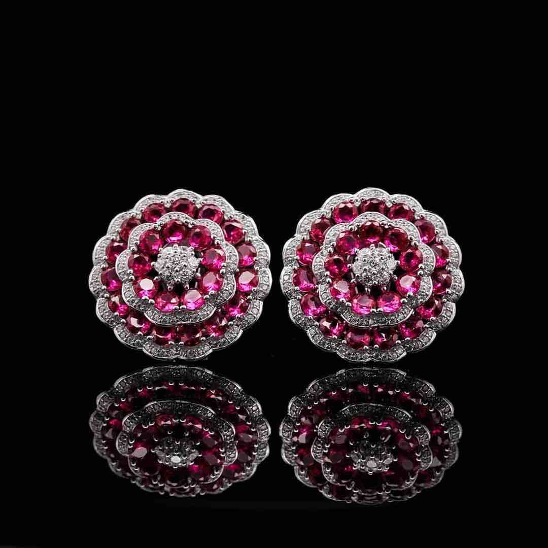 Omnia Floral Halo Earrings with Ruby Red Simulated Diamonds in 92.5 Silver quantity