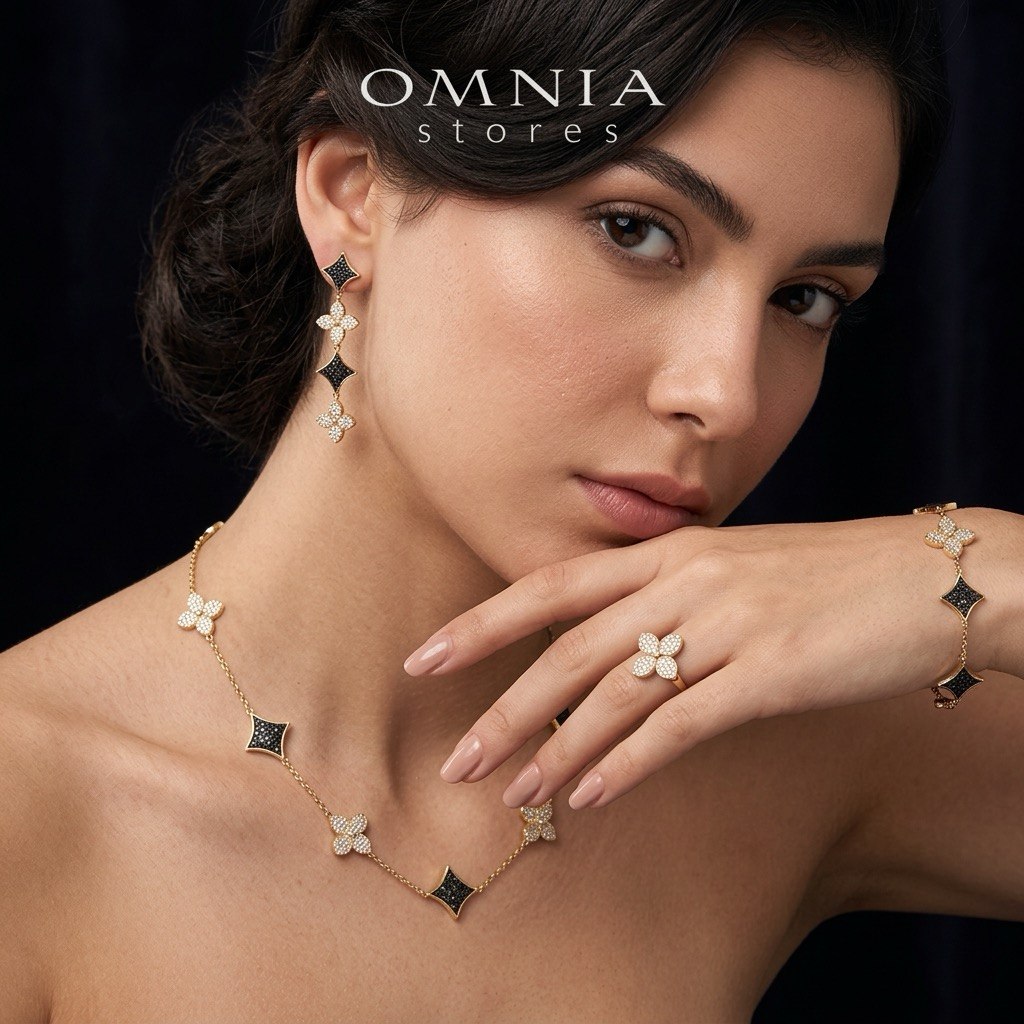 The centrepiece of this set is its striking black choker design — an intimate, close-to-the-neck silhouette that has reclaimed its place as one of the most coveted jewellery styles among fashion-conscious women across the Gulf and wider Arab world. Paired with matching earrings, bracelet, and ring, the Omnia Golden Clove set creates a cohesive, head-to-toe luxury look that transitions seamlessly from wedding ceremonies to exclusive evening events and high-profile social gatherings.