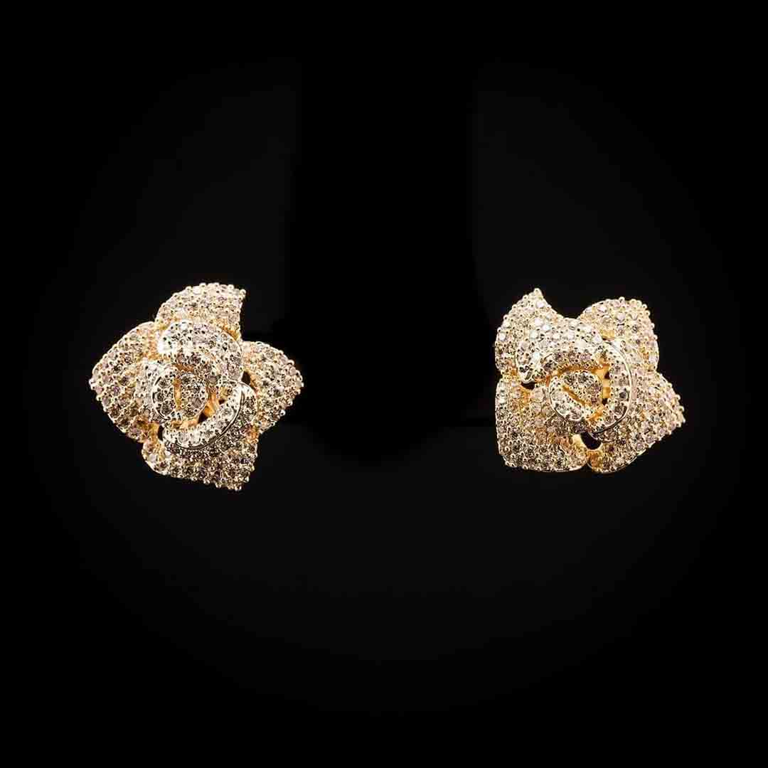Omnia Golden Rose Earrings with High-Quality Zircon Stones in Rhodium Plated