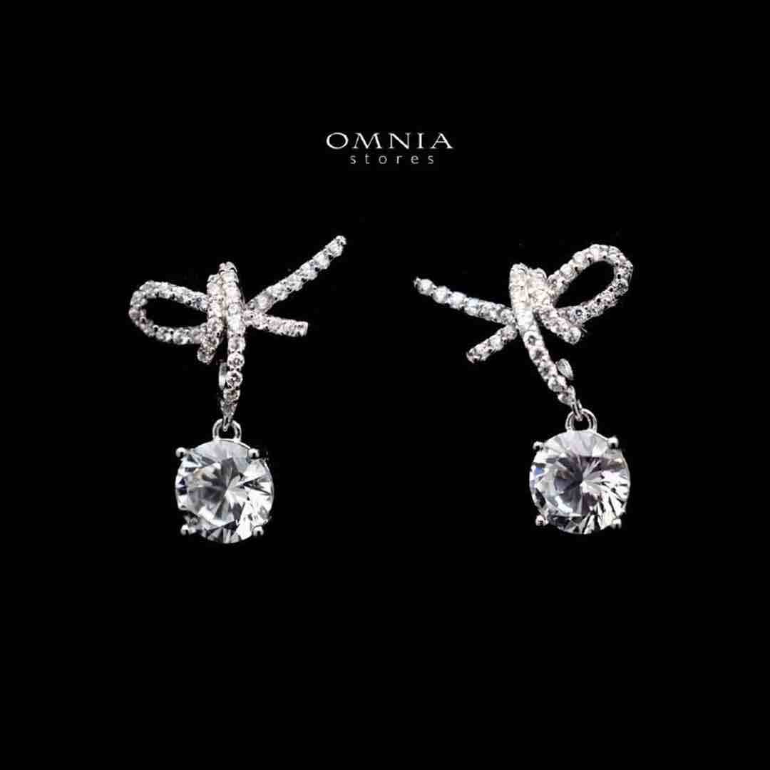 Omnia Hana Bow Drop Earrings in High Quality 92.5 Silver with Zircon Stones