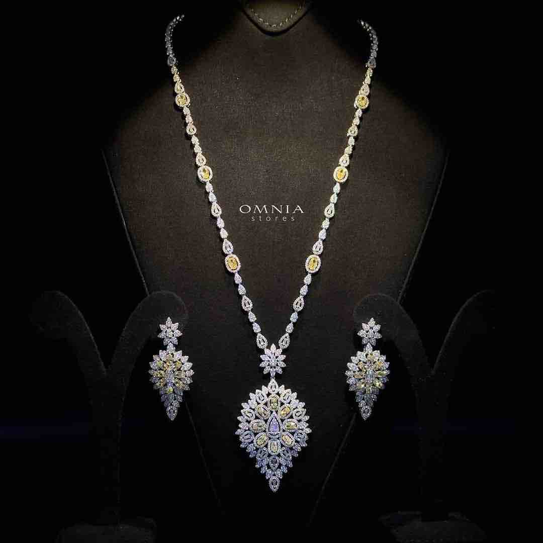 As bridal jewelry in Omnia Stores, the Omnia Hasmaa Bridal Long Chain Set captures the elegance of a style and is perfect for graceful occasions. This set offers a long chain necklace and earrings. This bridal long chain set has high-quality white and gold zircon stones and rhodium plating. This set is best for marriage ceremonies and official dinners. Omnia Stores offers the best and most affordable jewelry sets. Why wait? Buy now and get enchanted with this beautiful set!
