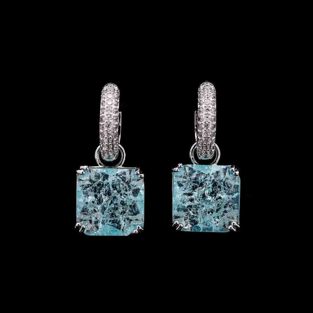 Omnia Helen Cushion Cut Drop Earrings with Sky blue Zircon in High Quality Rhodium Plated quantity