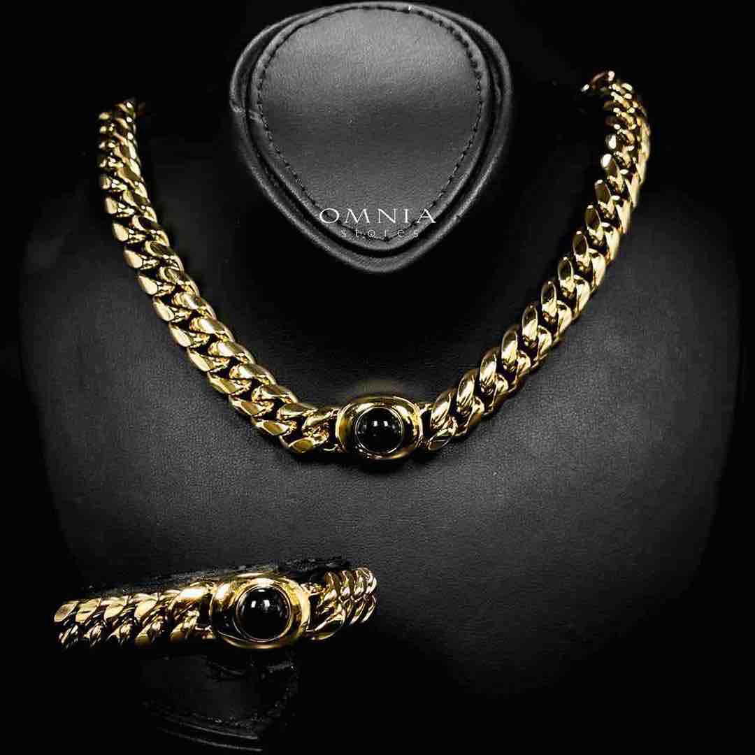 Make a confident statement with the Omnia Hilyah Jewelry Set, featuring a coordinated necklace and bracelet crafted from high-quality 12mm stainless steel. Coated in a rich copper-plated gold color, this bold yet minimalist set brings together strength, shine, and style in one elegant package.