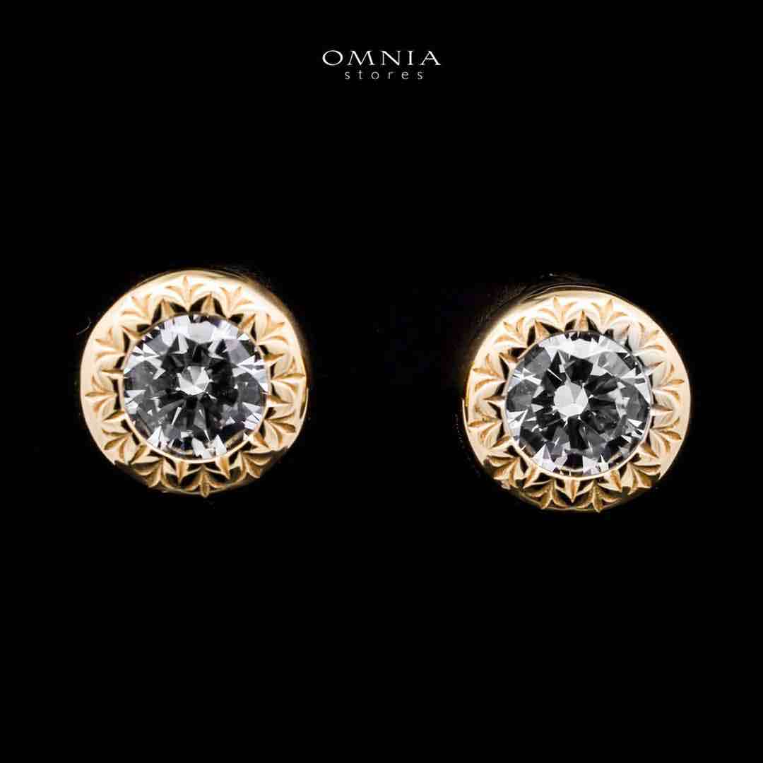 Omnia Ismah Golden Classic Stud Earrings – Timeless Radiance in 925 Silver