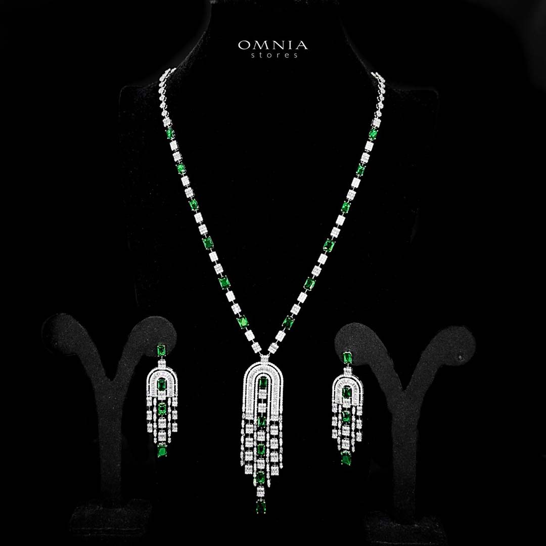 Omnia Jane Bridal Set in Rhodium Plated Finish with High-Quality Green Zircon Stones – A Regal Touch for Your Wedding Look