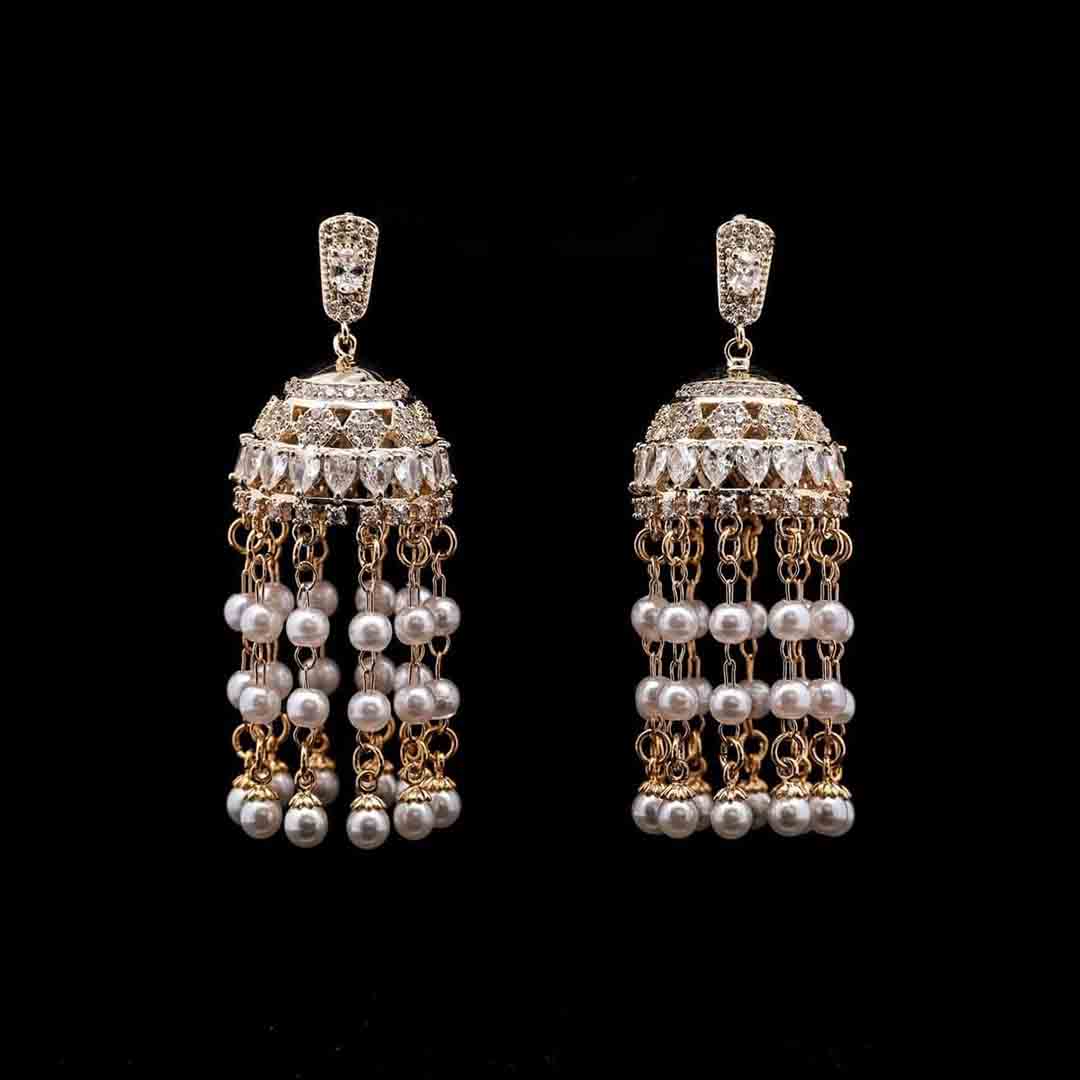 Omnia Jasmine Pearl Chandelier Earrings with High-Quality Zircon Stones in Gold-Plated Finish quantity