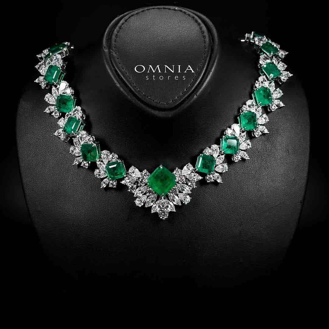Omnia Jina Necklace – Elegant Silver Craft with a Touch of Emerald Green