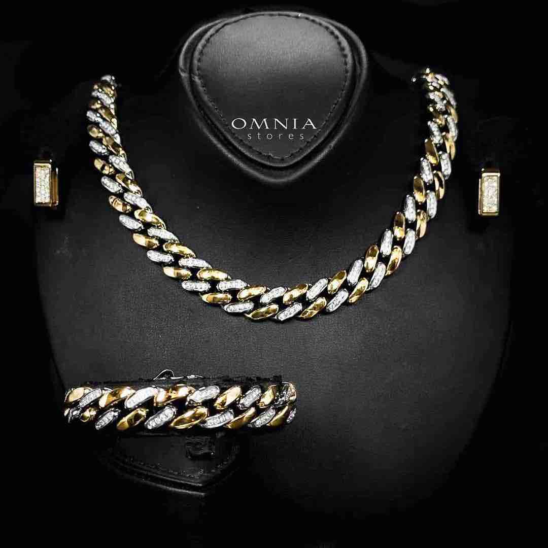 Omnia Khadra Copper Plated Gold Color Mixed Necklace, Bracelet & Earrings Set in High-Quality 12mm Stainless Steel
