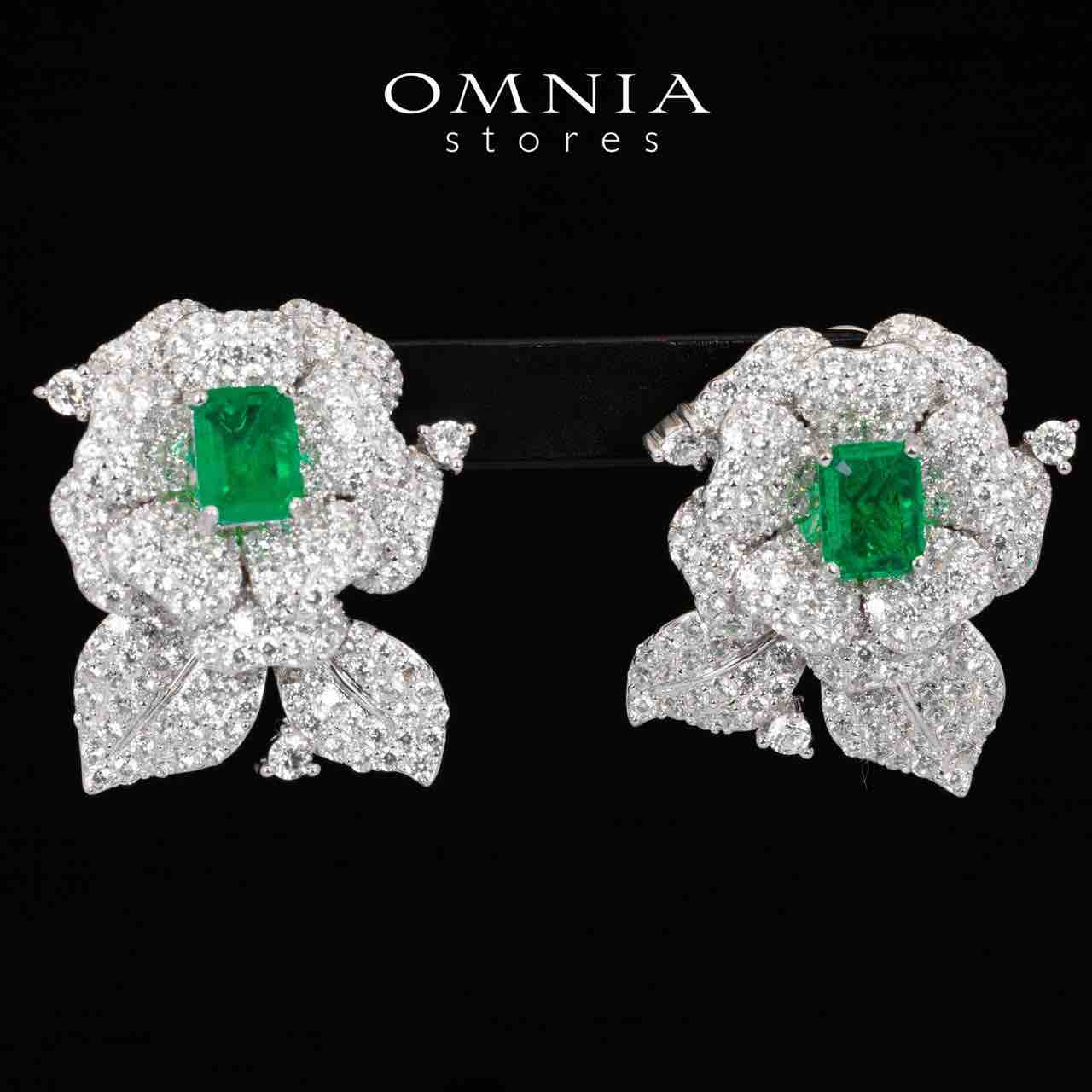 Omnia Laina White and Green Clip Earrings With High Quality Simulated Diamonds in 925 Silver