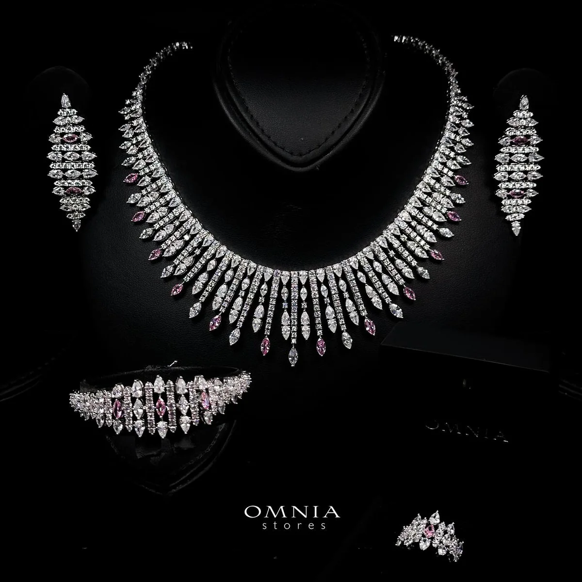 The Omnia Lana Pink Bridal Full Set is a luxurious and elegant jewelry ensemble designed to make brides feel radiant on their special day. Featuring high-quality zircon stones and finished in premium rhodium plating, this set exudes sophistication and charm. Its delicate pink accents add a soft, romantic touch, perfect for weddings, engagements, or celebratory events.