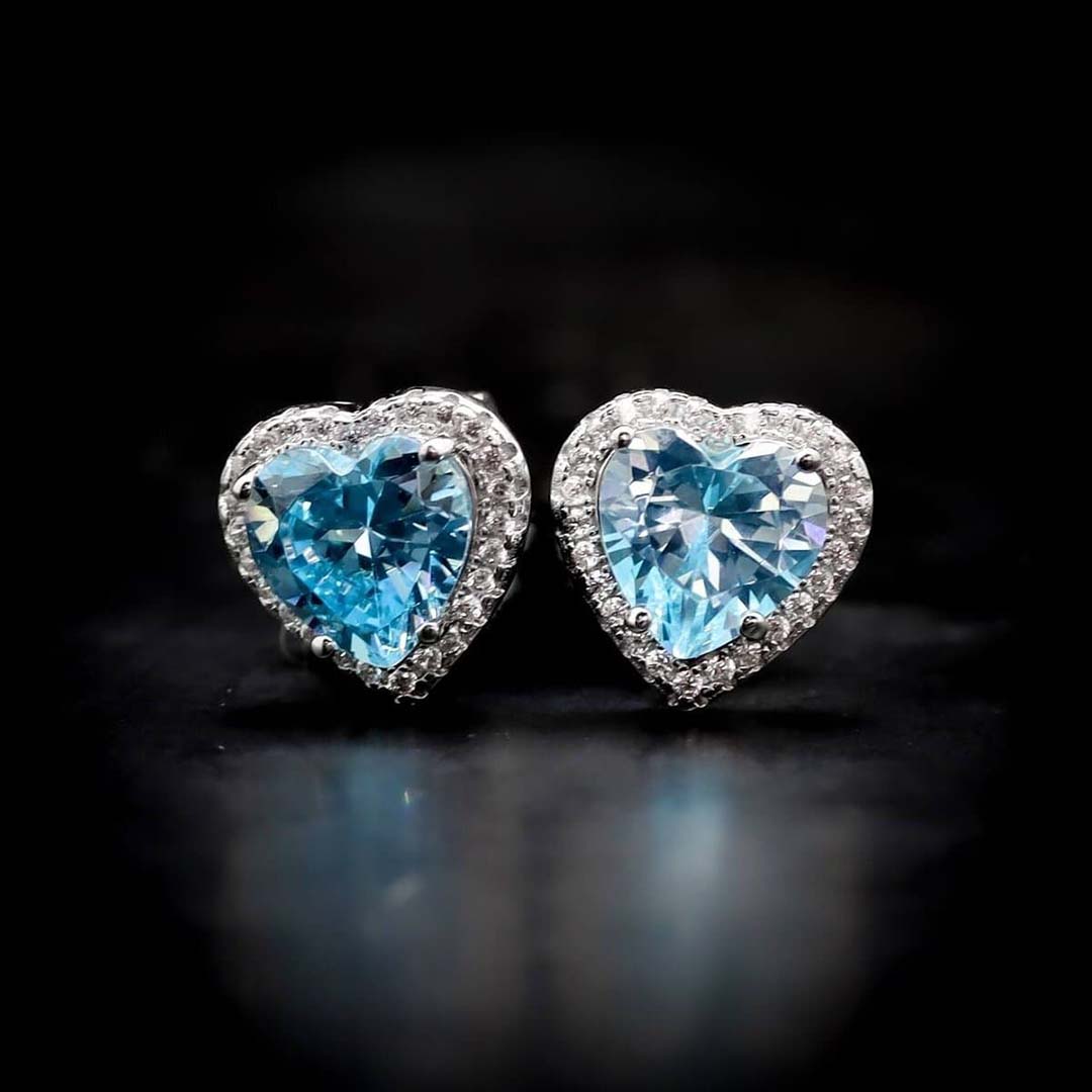Omnia Sky Blue Heart Stud Earrings in 92.5 Silver with High Quality Simulated Diamonds