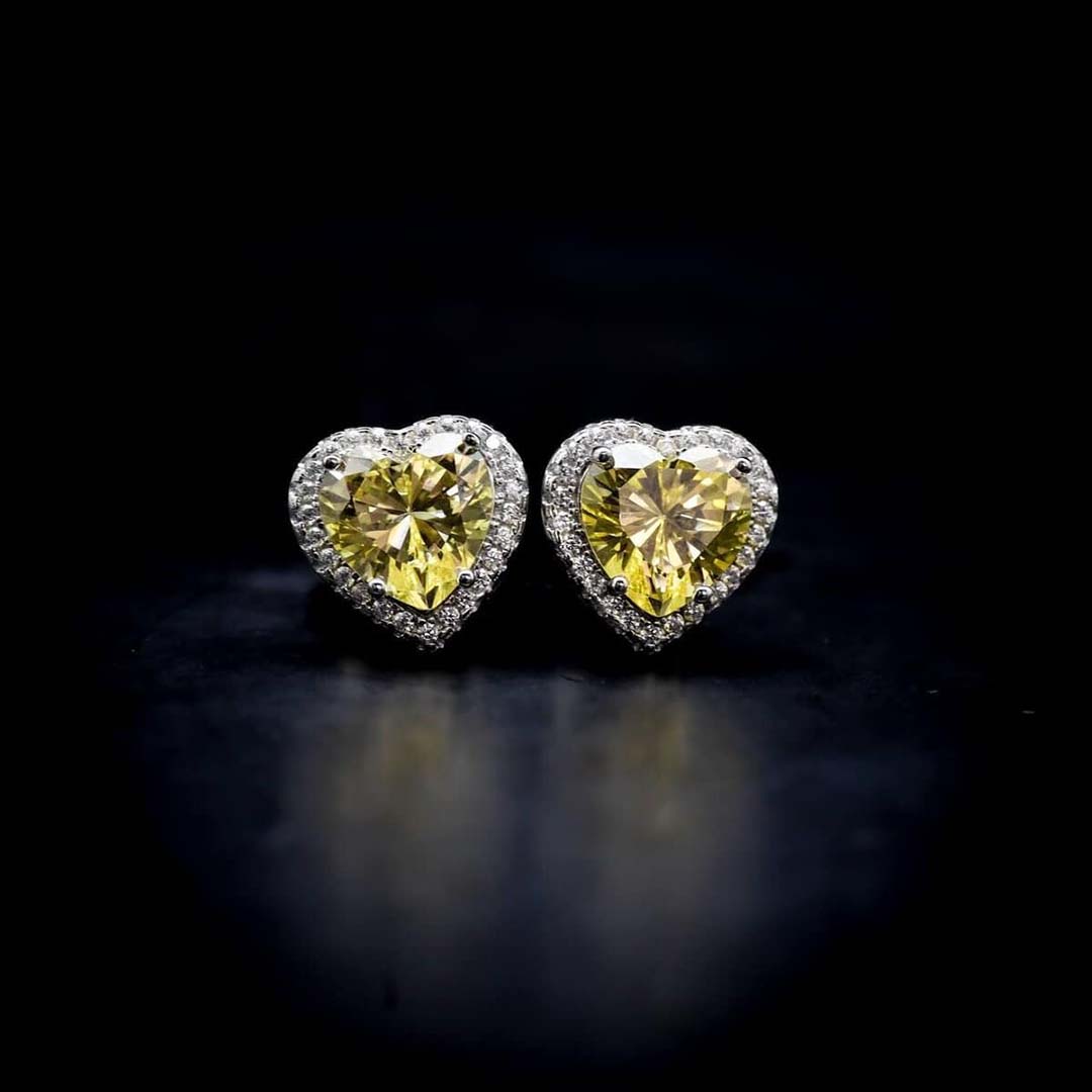 Omnia Latifa Yellow Stud Earrings in 92.5 Silver High Quality Simulated Diamonds