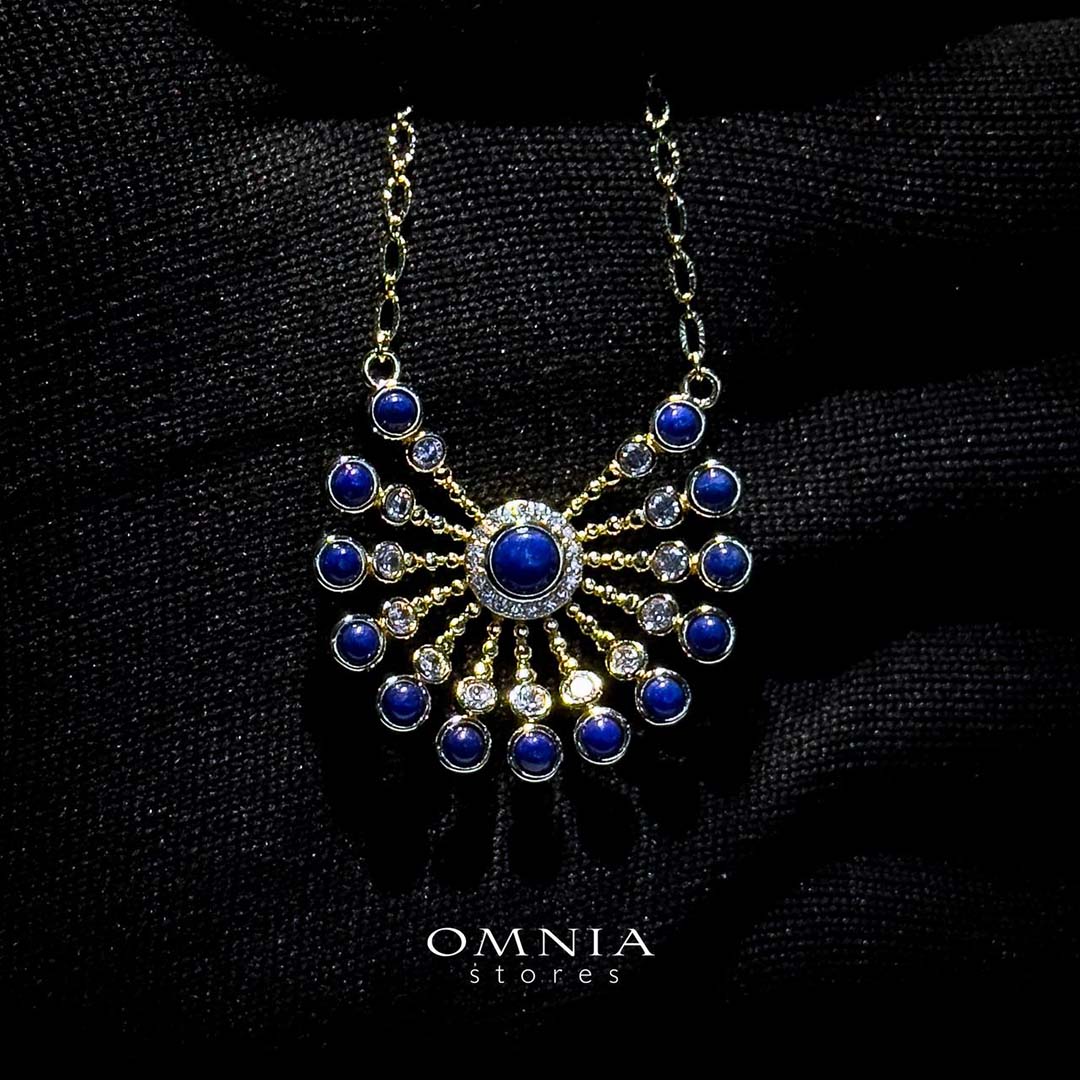 Omnia Layal Sunburst Lapis Pendant Necklace with Beaded Accents in Brass with Gold Plated Finish quantity