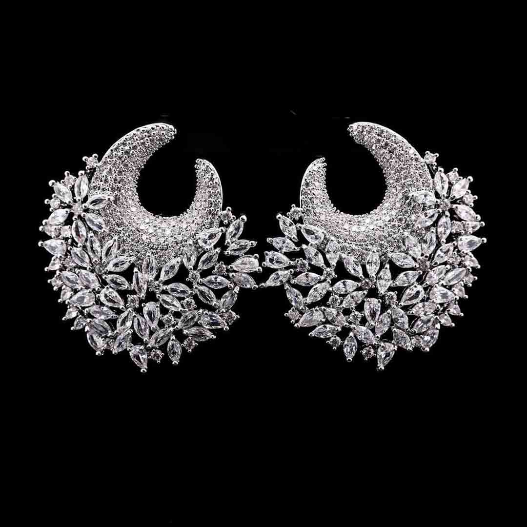 - Set of High Quality Pure White Floral Crescent Hoop Earrings