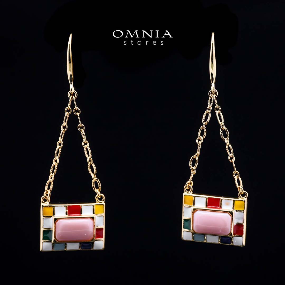 Omnia Livia Queen Shell Geometric Drop Earrings with Colorful Enamel Accents in Brass with Gold Plated Finish