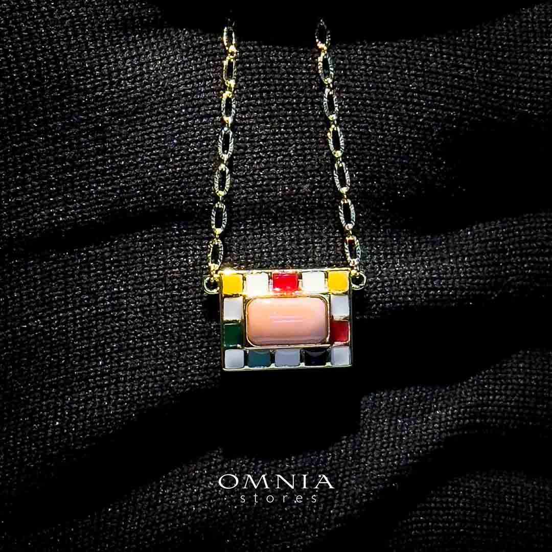 Omnia Livia Queen Shell Geometric Pendant Necklace with Colorful Enamel Accents in Brass with Gold Plated Finish