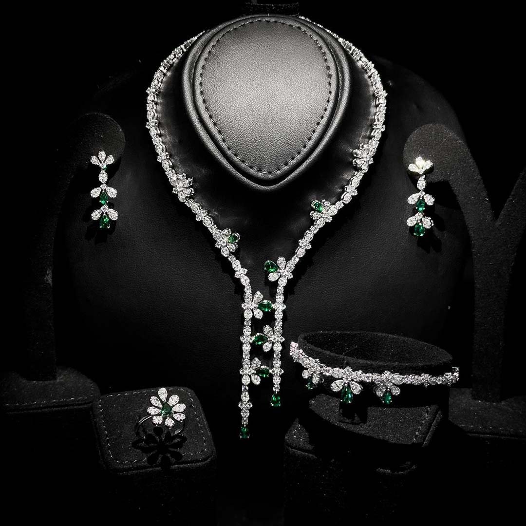 - Bridal Full Set in 92.5 Silver with High-Quality Simulated Diamonds and Teardrop Design