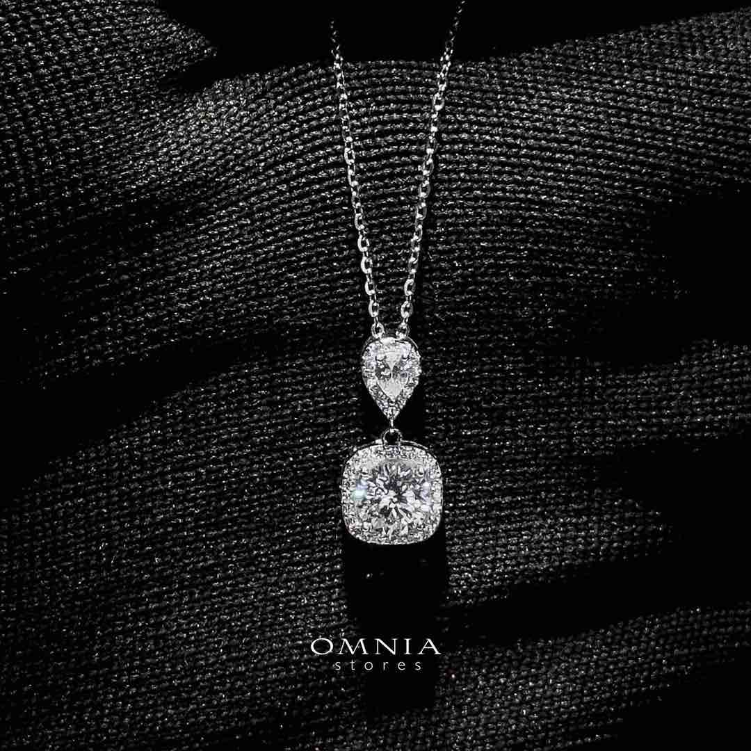 SUPER SALE!!! Omnia Madison Drop Pendant Necklace in 925 Silver with High-Quality Moissanite Certified Stones