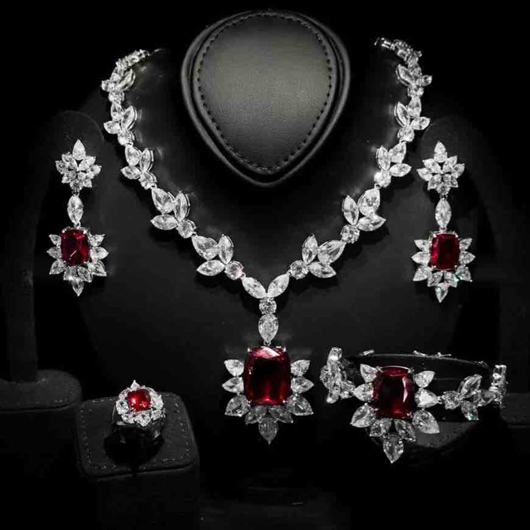 Omnia Medusa Red Bridal Full Set in 92.5 Silver High Quality Simulated diamonds quantity