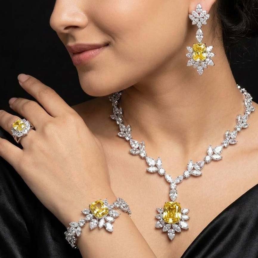 Omnia Medusa Yellow Bridal Full Set in 925 Silver High Quality Simulated diamonds
