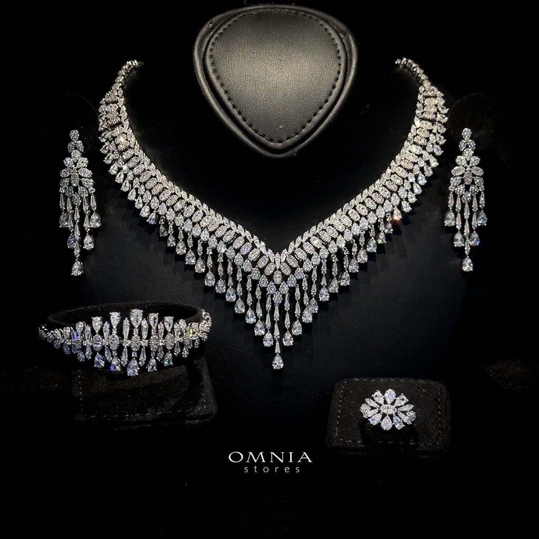 - Bridal Full Set in High Quality Zircon Stone Rhodium Plated