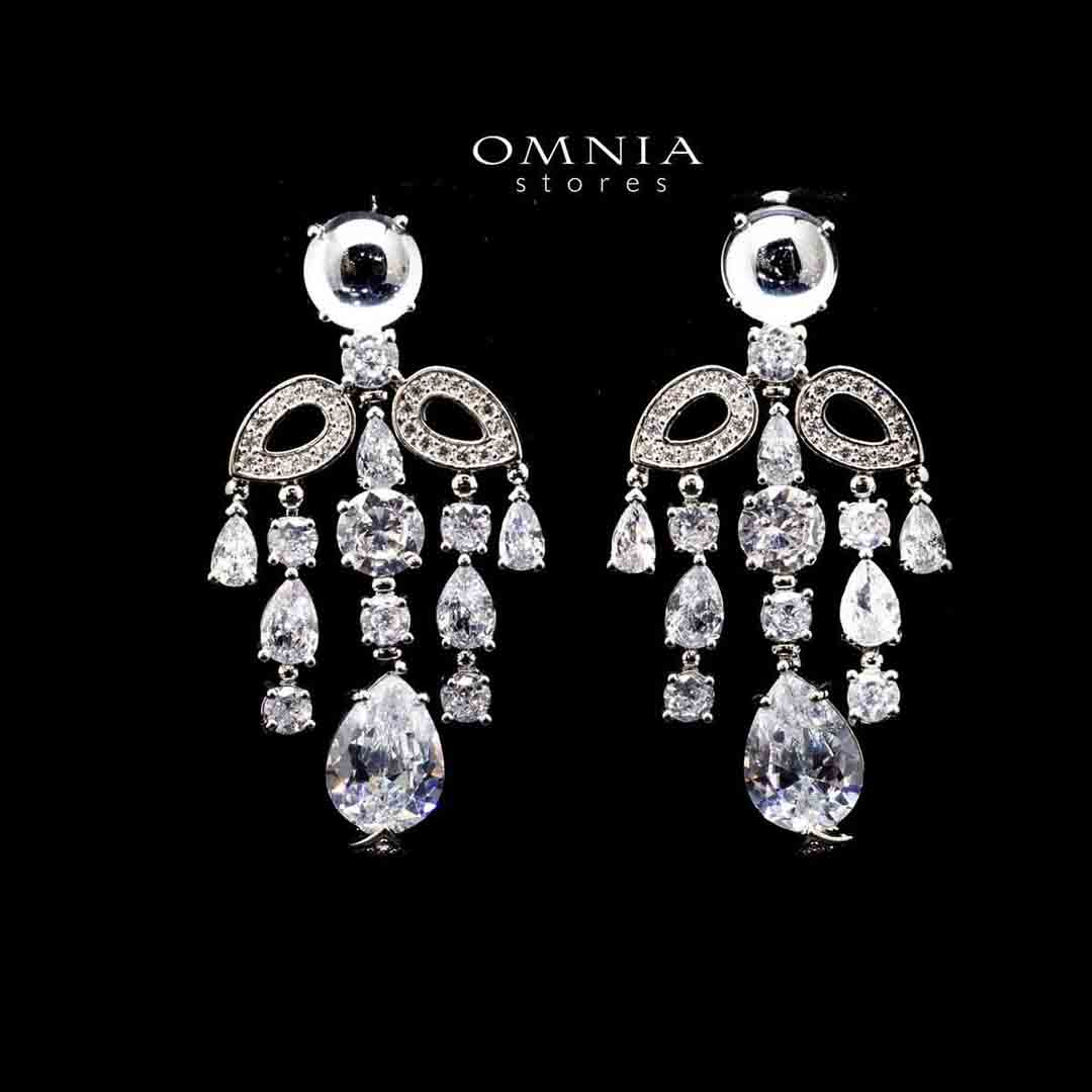 Omnia Mohra Chandelier Earrings with White Zircon Drops in High Quality Zircon Rhodium Plated quantity