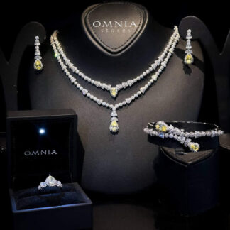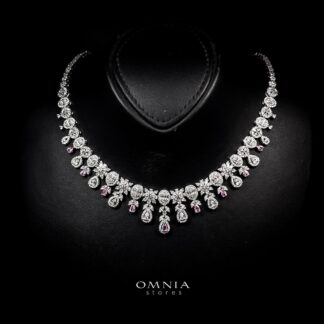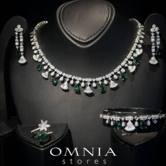 The Omnia Rafi Pink Full Set brings a vibrant pop of color to your bridal outfit. This complete set includes a necklace, earrings, ring, and bracelet, all adorned with high-quality simulated diamonds. The bright pink hue adds a playful and elegant touch to your look, while the hypoallergenic and tarnish-free design ensures both comfort and beauty. Available exclusively at Omnia Stores, this set is ideal for your special day.