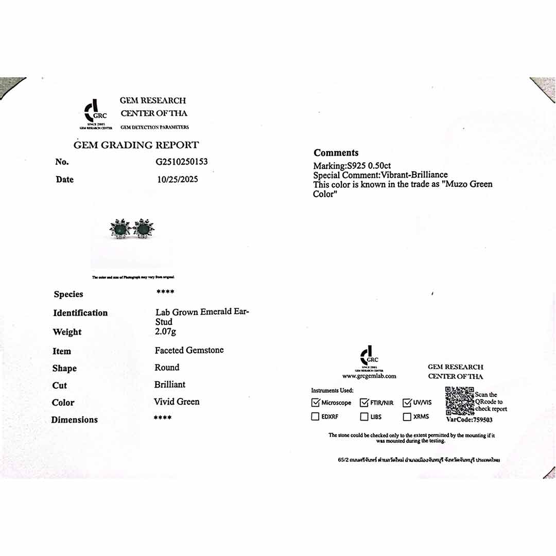 - Stones: GRC Certified Lab-Grown Emerald Green Stones (Center Stone Size: RD6.5mm)