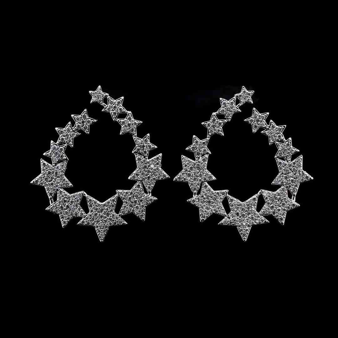 Omnia Najwan Star-Cluster Hoop Earrings with High-Quality Zircon Stones in Rhodium-Plated Finish quantity