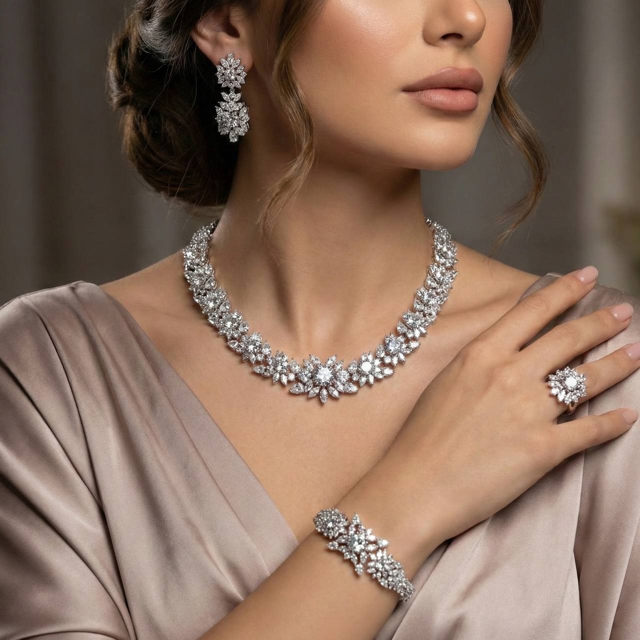 - Full Set of High Quality Necklace, Bracelet, Earrings, and Adjustable Ring