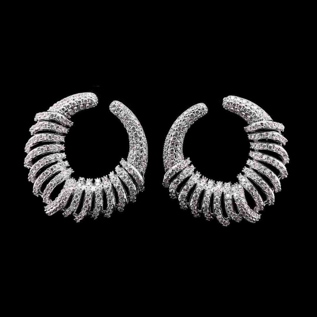 Omnia Narmeen White Spiral Hoop Earrings with High-Quality Zircon Stones in Rhodium-Plated Finish quantity