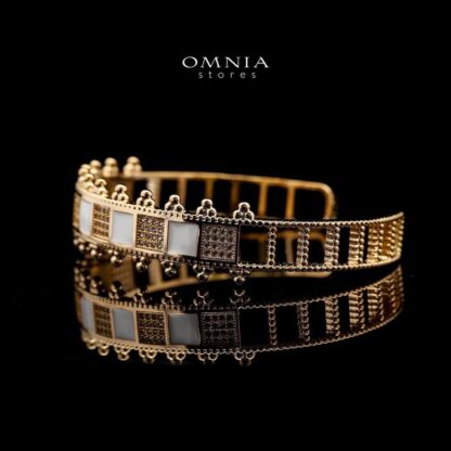 Omnia Noor Gold-Plated Bracelet and Ring Set with White Square-Cut and Round-Cut High-Quality Zircon Stones in Elegant Design