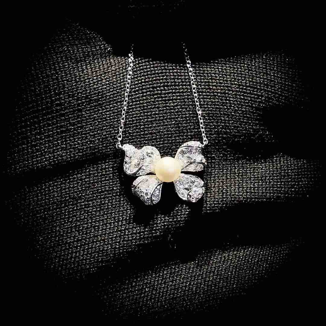 Omnia Pearl Butterfly Necklace in 92.5 Silver with High Quality Simulated Diamonds quantity