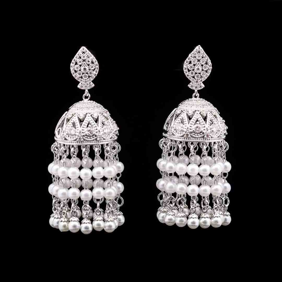 Omnia Pearl Tassel Earrings in High-Quality Zircon Stone and Rhodium Plated quantity