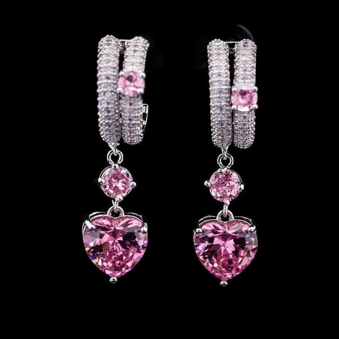 Omnia Pink Heart Drop Earrings in High-Quality Pink Zircon Stone with Double Hoop Design in Rhodium Plated quantity