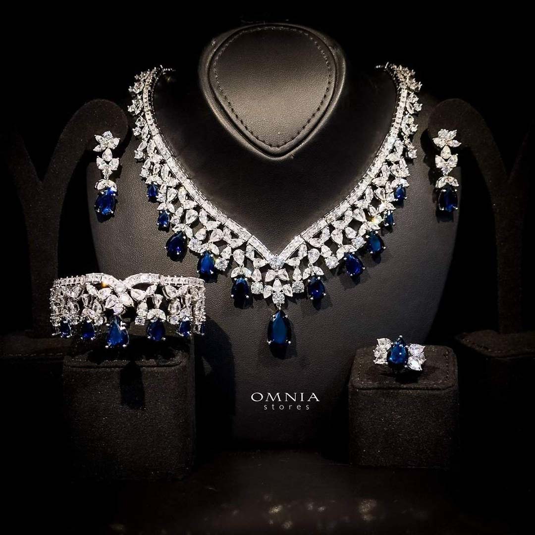 Discover your royal elegance with the Omnia Princess Dark Blue Simulated Diamonds Set. This regal collection features a necklace, earrings, bracelet, and ring, each adorned with deep blue simulated diamonds and set in polished rhodium plating for a stunning look. Perfect for adding a touch of luxury to any occasion, this set is designed to make you shine.