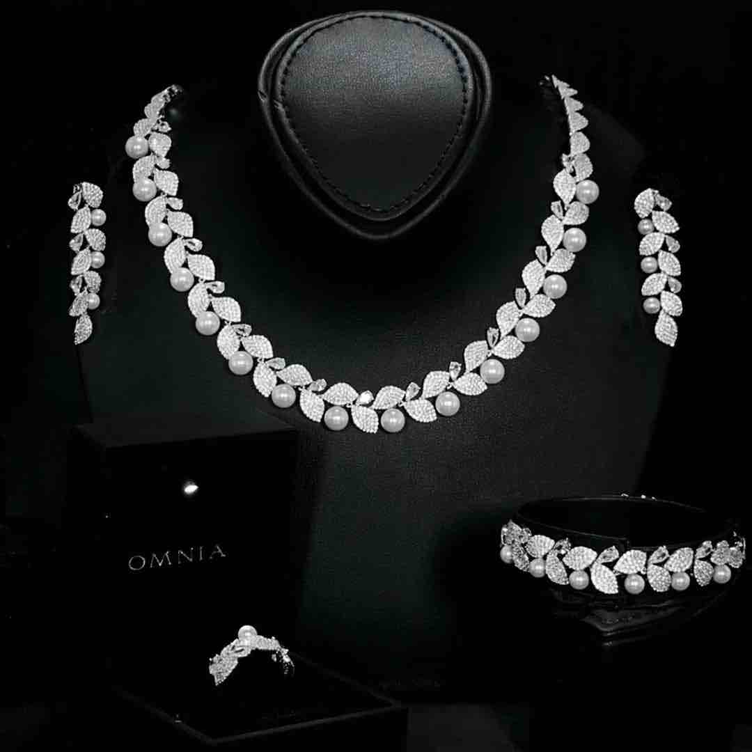 The Omnia Radwa Pearl Bridal Full Set is an exquisite and regal jewelry ensemble designed to elevate your bridal look with timeless elegance, luminous beauty, and unmatched sophistication. Crafted from premium 925 sterling silver, this full set features radiant high-quality white zircon stones paired with lustrous pearls, creating a breathtaking harmony of sparkle and grace. Perfect for modern brides seeking a refined yet luxurious aesthetic, this set enhances every bridal outfit with its soft glow and captivating brilliance.