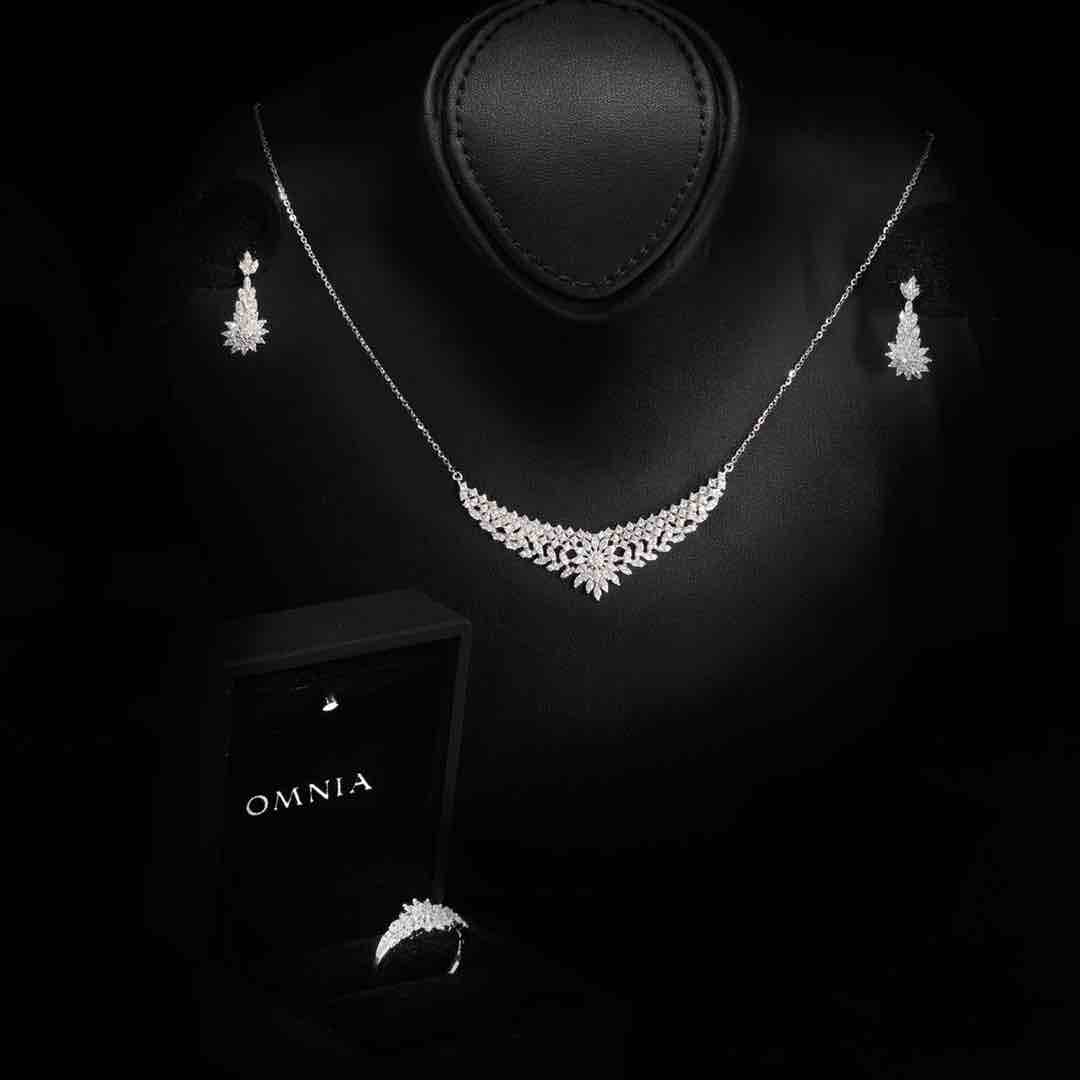 The Omnia Rawiya White Jewelry Set is crafted for brides who want elegance in every detail. This complete set features a necklace, earrings, and ring, all made from 925 silver and adorned with high-quality simulated diamonds, creating a harmonious and radiant look for your wedding day.