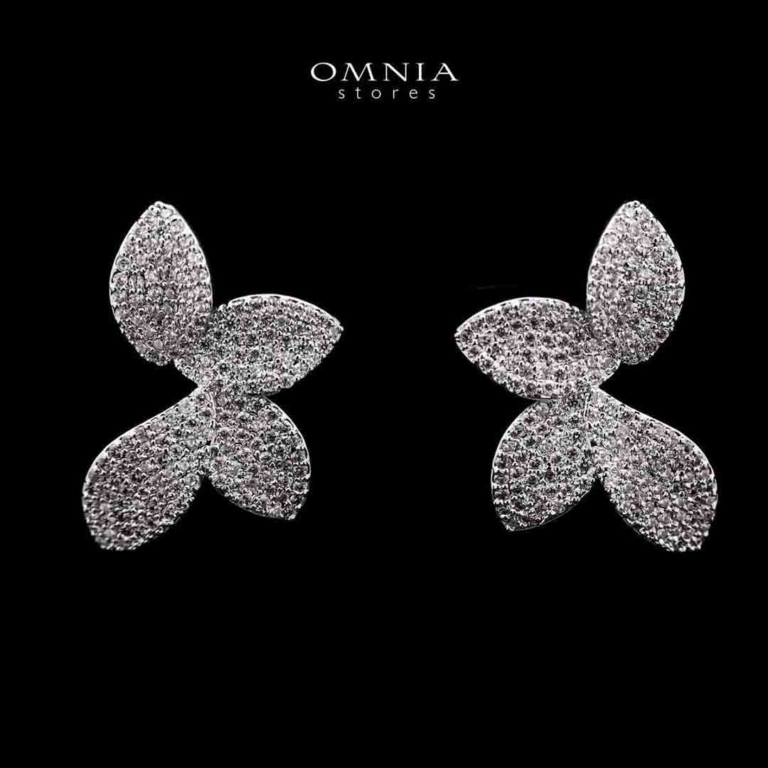 Omnia Rhina White Floral Petal Earrings with Pave-Set High-Quality Zircon Stones in a Rhodium Plated Finish quantity