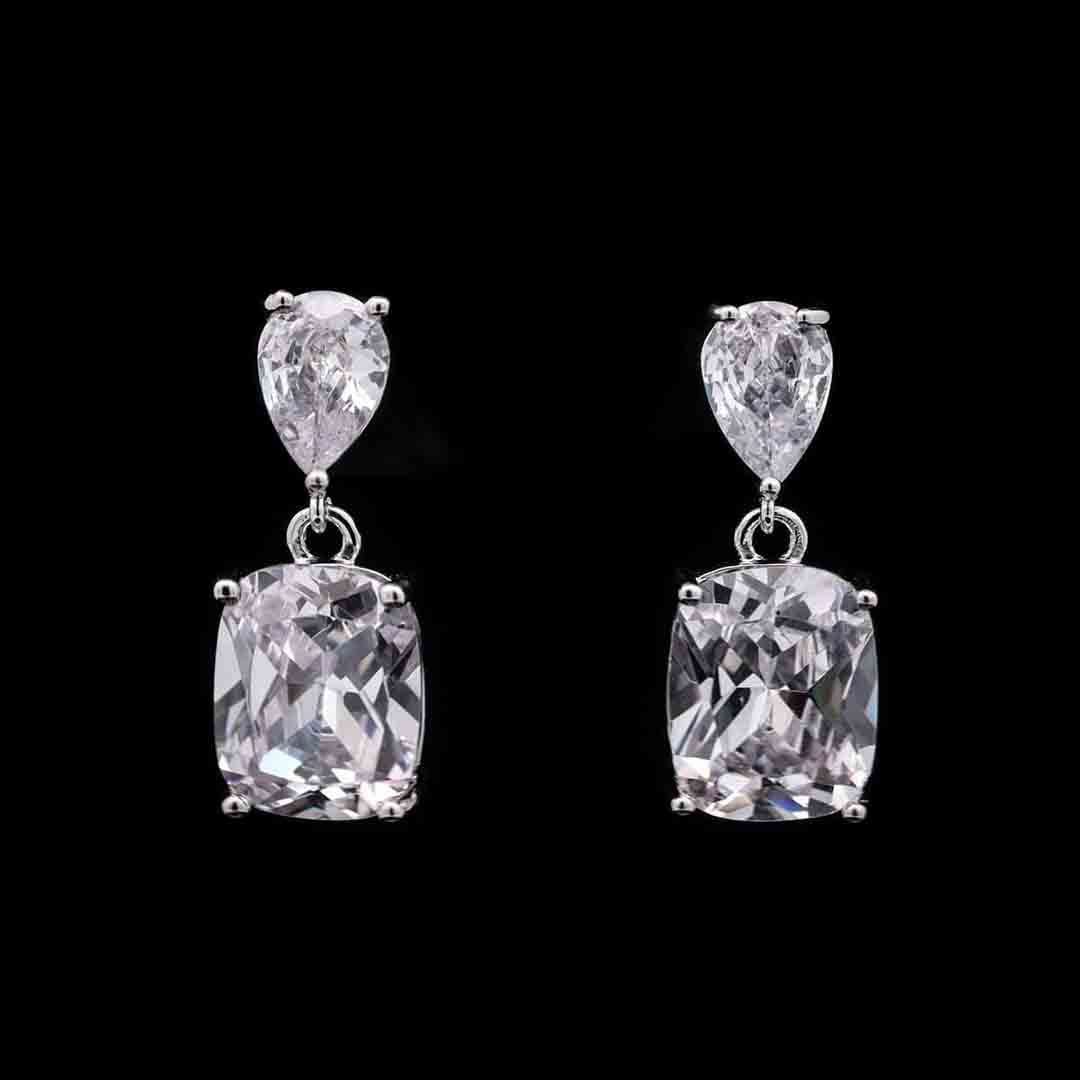 Omnia Rima Drop Earrings in High-Quality White Zircon Stone in Rhodium Plated with Classic Teardrop Design quantity